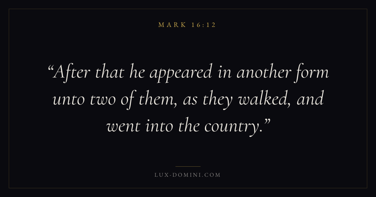 After that he appeared in another form unto two of them, as they walked, and went into the country.