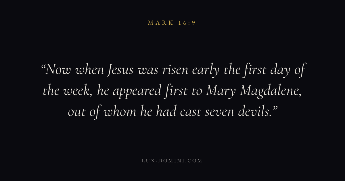 Now when Jesus was risen early the first day of the week, he appeared first to Mary Magdalene, out of whom he had cast seven devils.