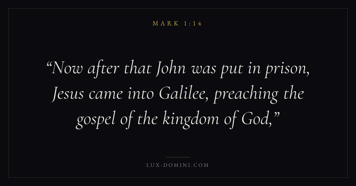 Now after that John was put in prison, Jesus came into Galilee, preaching the gospel of the kingdom of God,