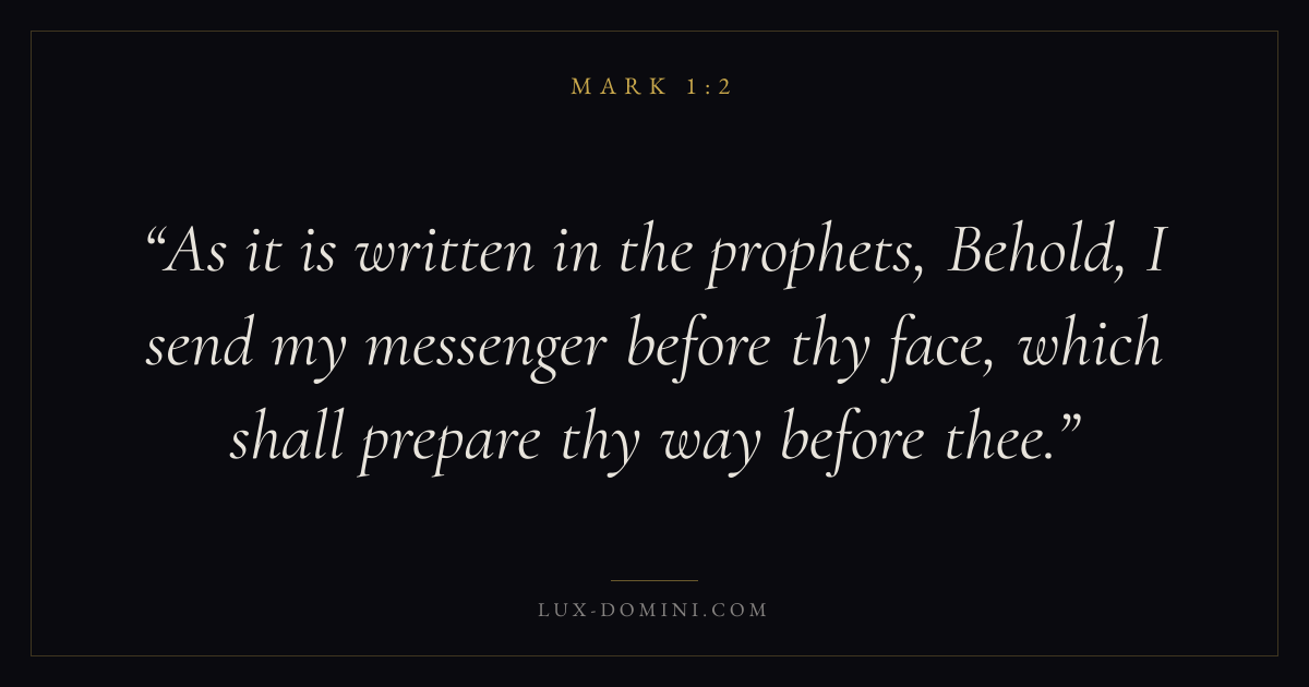 As it is written in the prophets, Behold, I send my messenger before thy face, which shall prepare thy way before thee.
