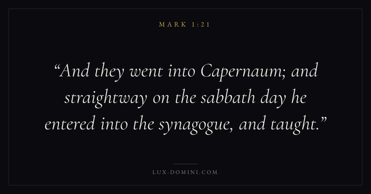 And they went into Capernaum; and straightway on the sabbath day he entered into the synagogue, and taught.