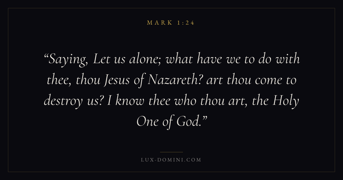 Saying, Let us alone; what have we to do with thee, thou Jesus of Nazareth? art thou come to destroy us? I know thee who thou art, the Holy One of God.