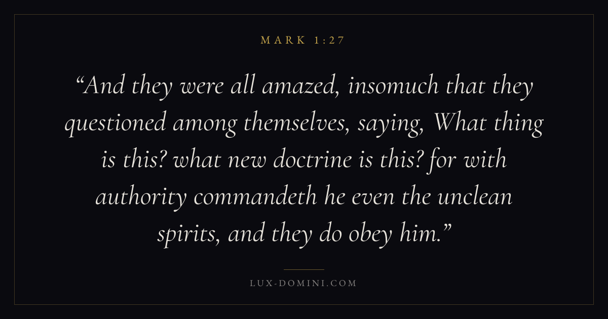 And they were all amazed, insomuch that they questioned among themselves, saying, What thing is this? what new doctrine is this? for with authority commandeth he even the unclean spirits, and they do obey him.