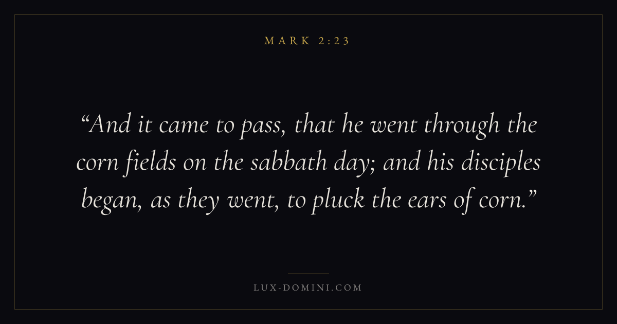 And it came to pass, that he went through the corn fields on the sabbath day; and his disciples began, as they went, to pluck the ears of corn.