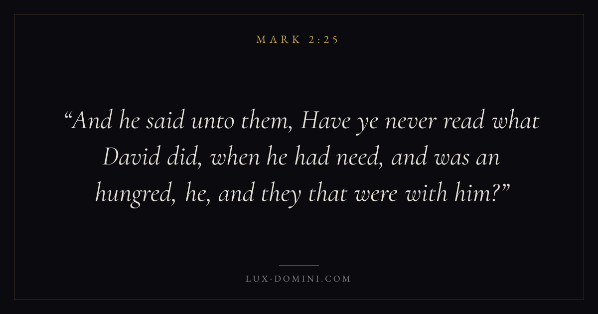 And he said unto them, Have ye never read what David did, when he had need, and was an hungred, he, and they that were with him?