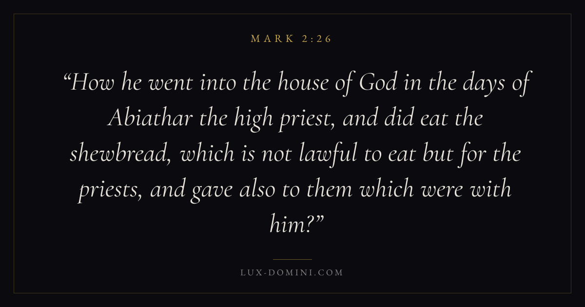 How he went into the house of God in the days of Abiathar the high priest, and did eat the shewbread, which is not lawful to eat but for the priests, and gave also to them which were with him?