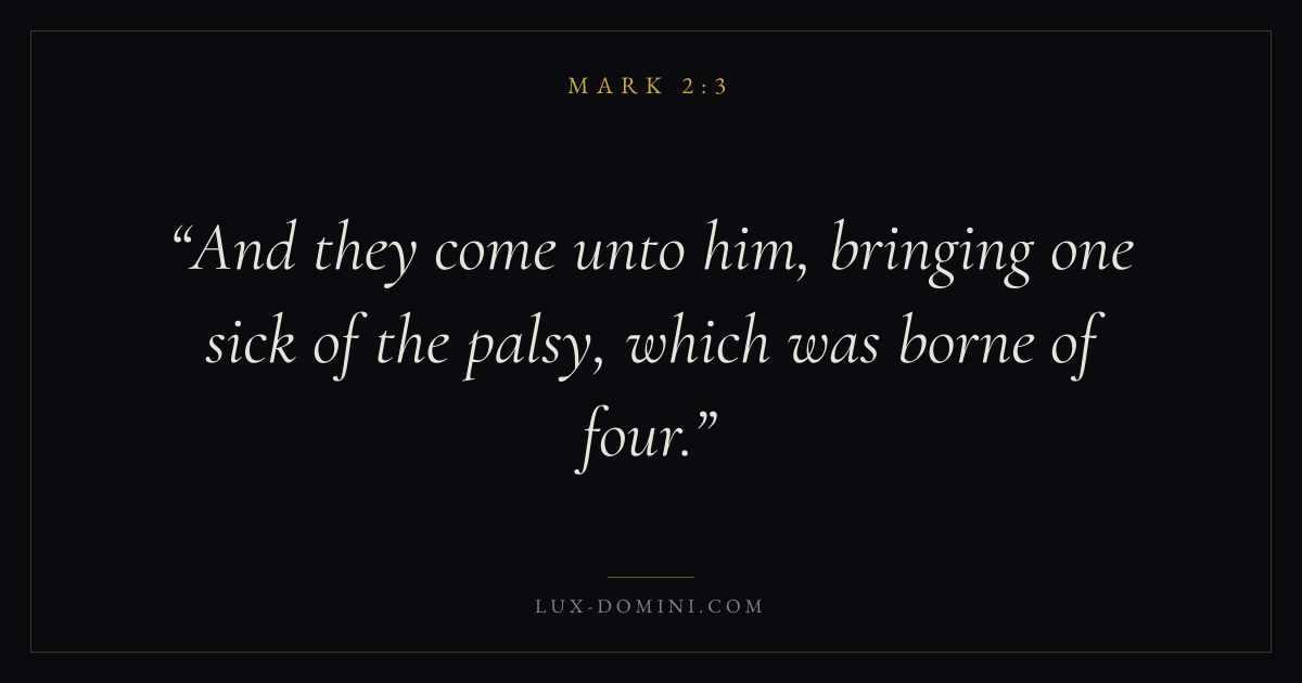 And they come unto him, bringing one sick of the palsy, which was borne of four.