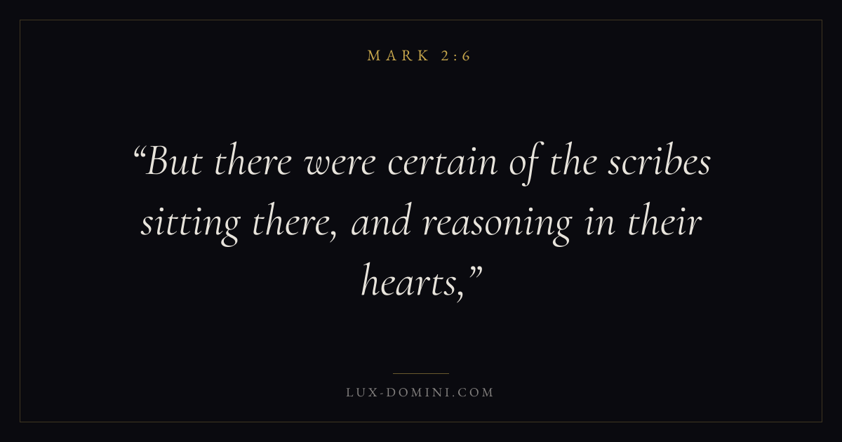 But there were certain of the scribes sitting there, and reasoning in their hearts,