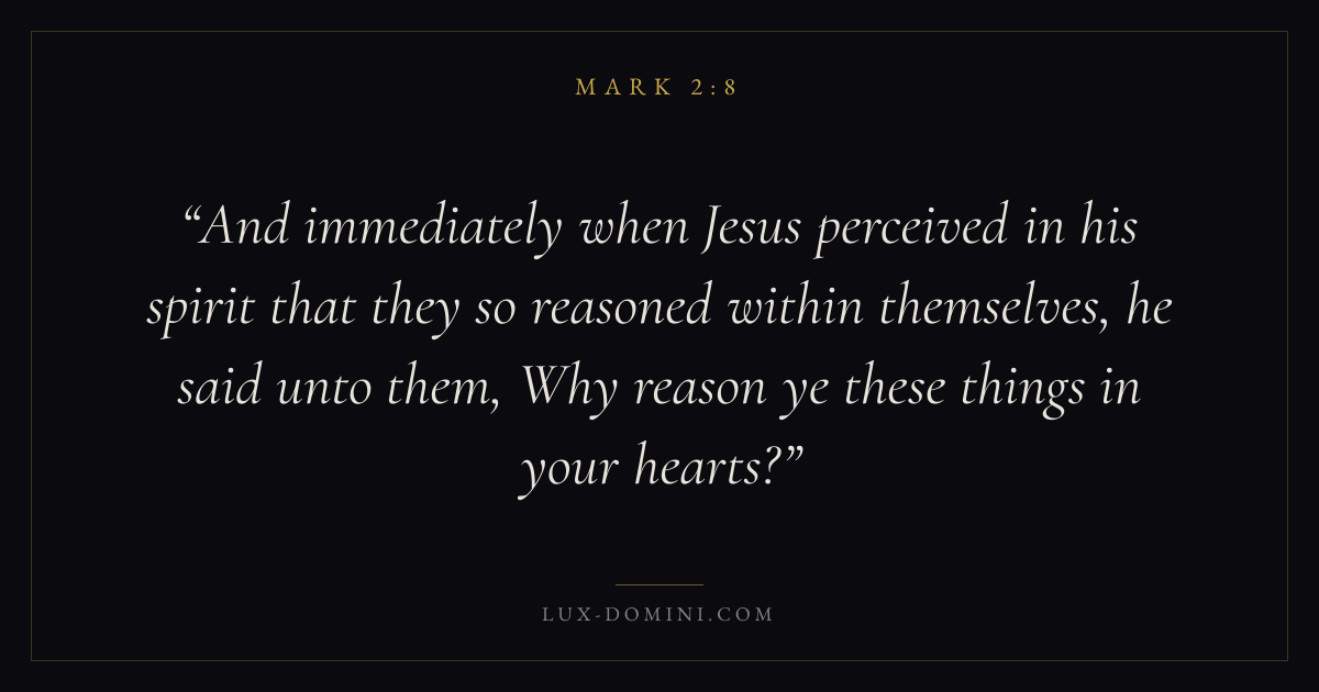 And immediately when Jesus perceived in his spirit that they so reasoned within themselves, he said unto them, Why reason ye these things in your hearts?