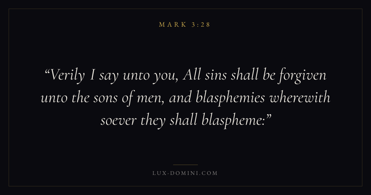 Verily I say unto you, All sins shall be forgiven unto the sons of men, and blasphemies wherewith soever they shall blaspheme: