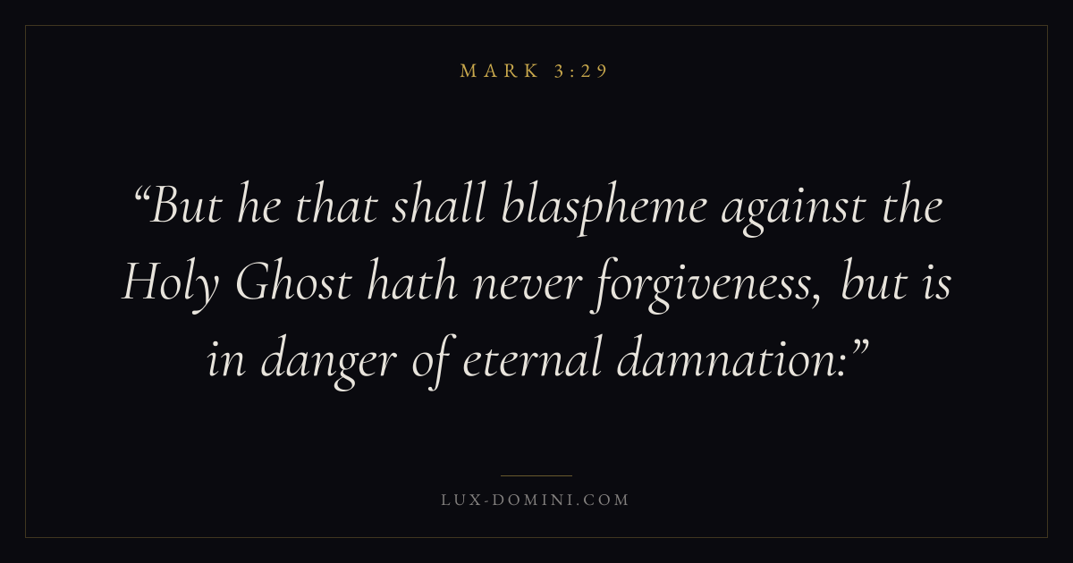 But he that shall blaspheme against the Holy Ghost hath never forgiveness, but is in danger of eternal damnation: