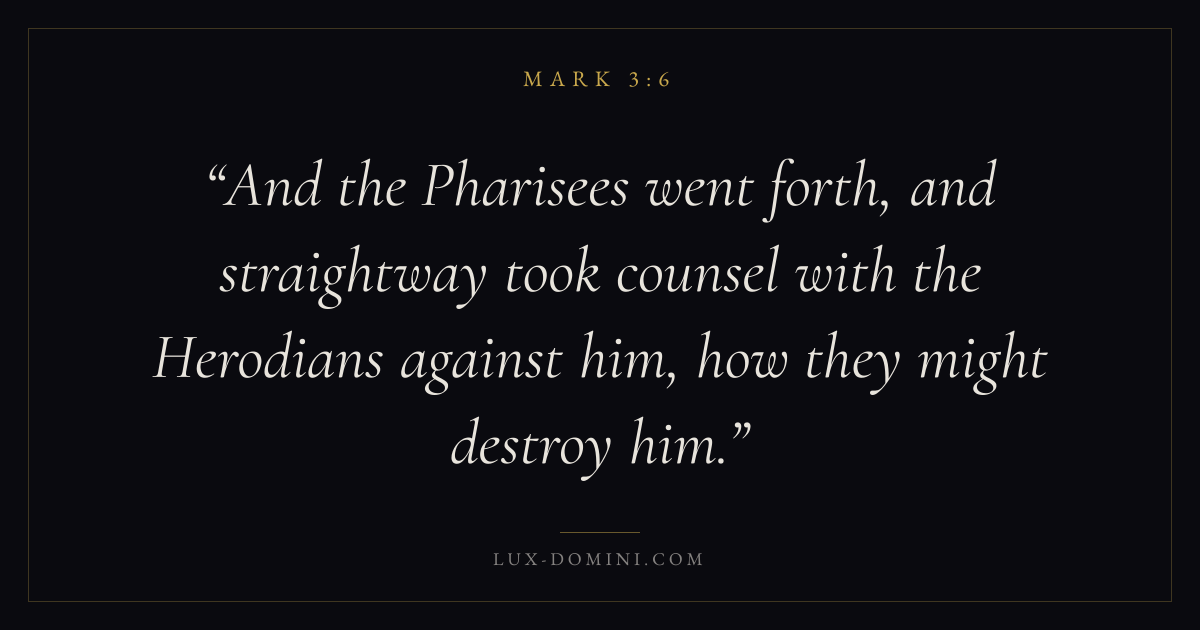 And the Pharisees went forth, and straightway took counsel with the Herodians against him, how they might destroy him.