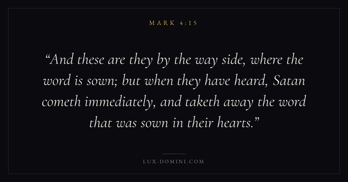 And these are they by the way side, where the word is sown; but when they have heard, Satan cometh immediately, and taketh away the word that was sown in their hearts.