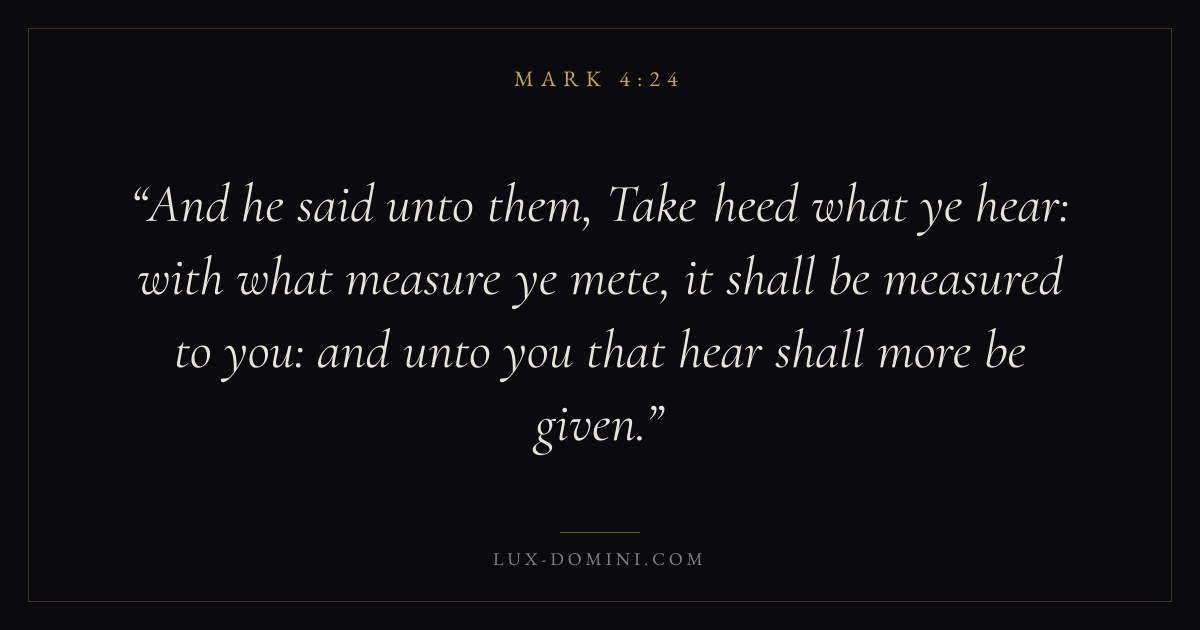 And he said unto them, Take heed what ye hear: with what measure ye mete, it shall be measured to you: and unto you that hear shall more be given.