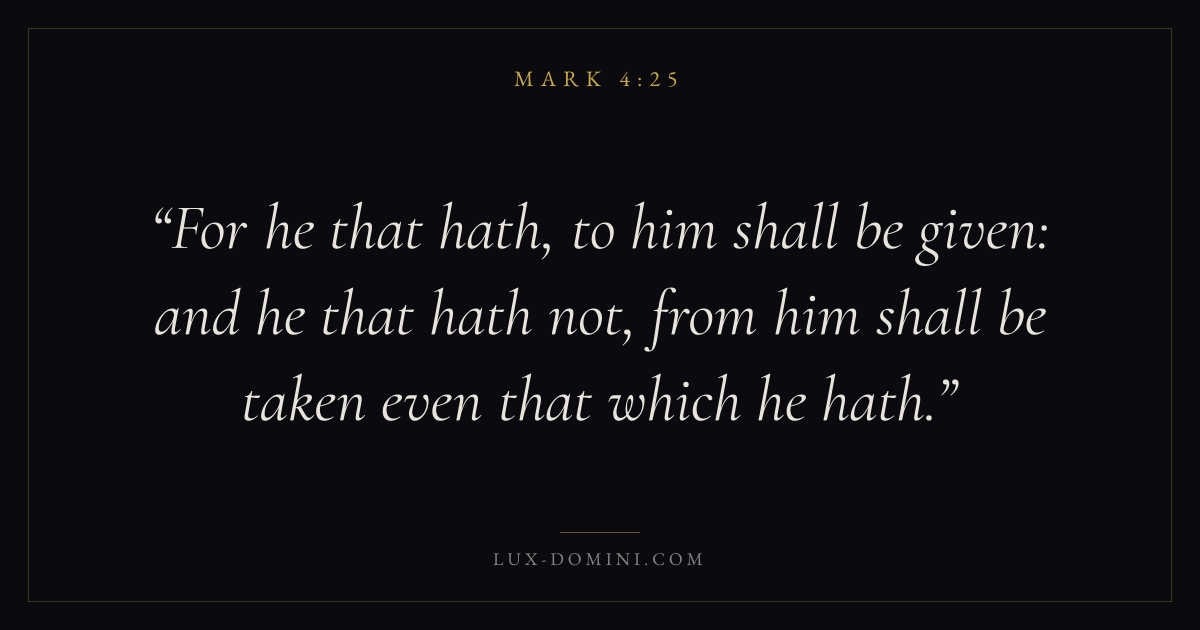For he that hath, to him shall be given: and he that hath not, from him shall be taken even that which he hath.