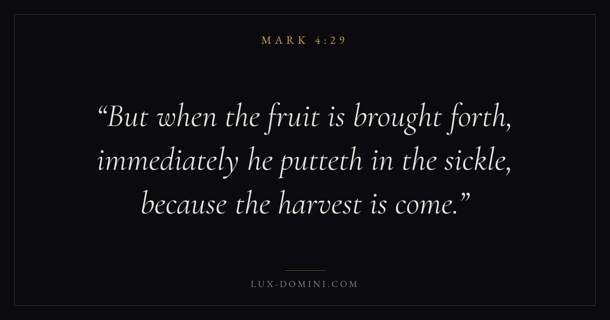 But when the fruit is brought forth, immediately he putteth in the sickle, because the harvest is come.