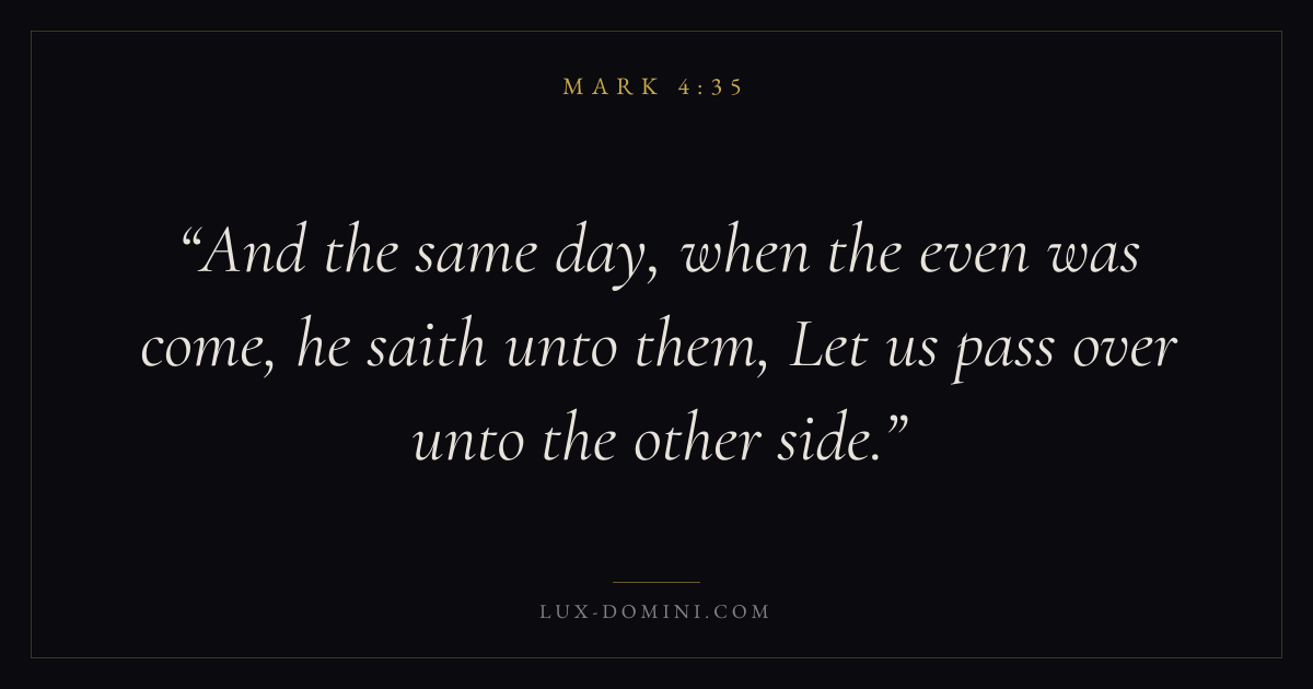 And the same day, when the even was come, he saith unto them, Let us pass over unto the other side.