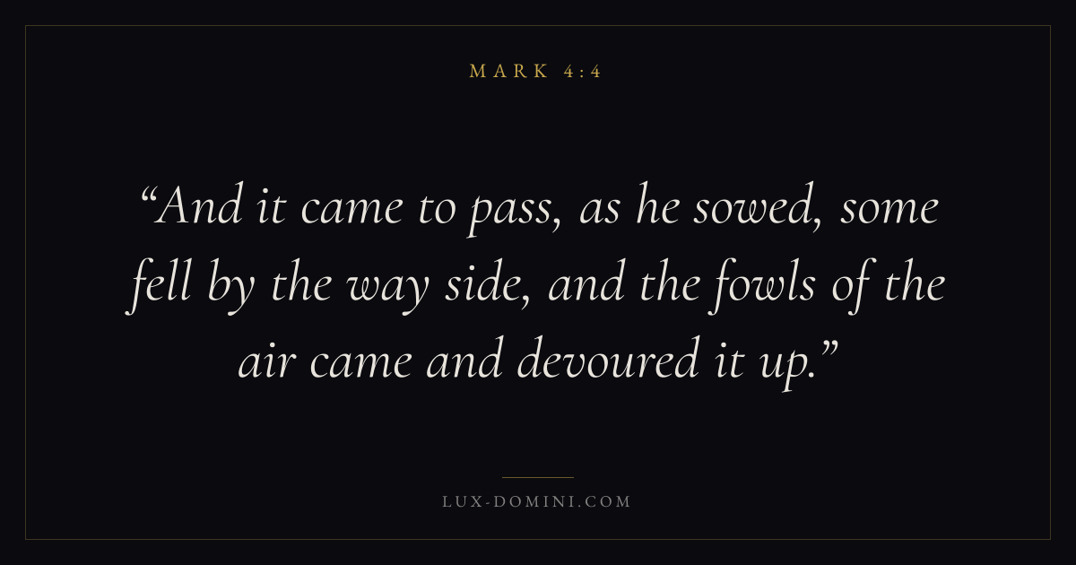 And it came to pass, as he sowed, some fell by the way side, and the fowls of the air came and devoured it up.