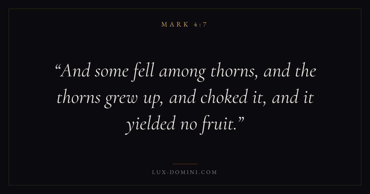 And some fell among thorns, and the thorns grew up, and choked it, and it yielded no fruit.