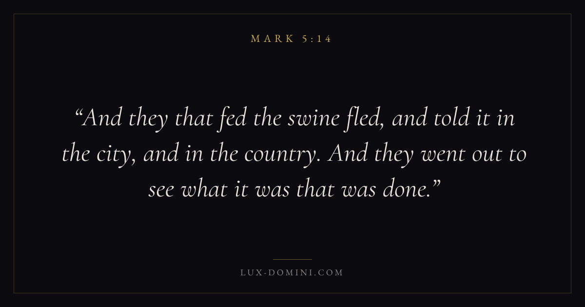 And they that fed the swine fled, and told it in the city, and in the country. And they went out to see what it was that was done.