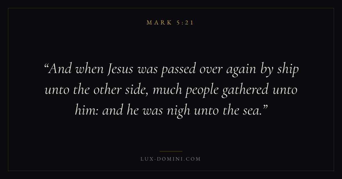And when Jesus was passed over again by ship unto the other side, much people gathered unto him: and he was nigh unto the sea.