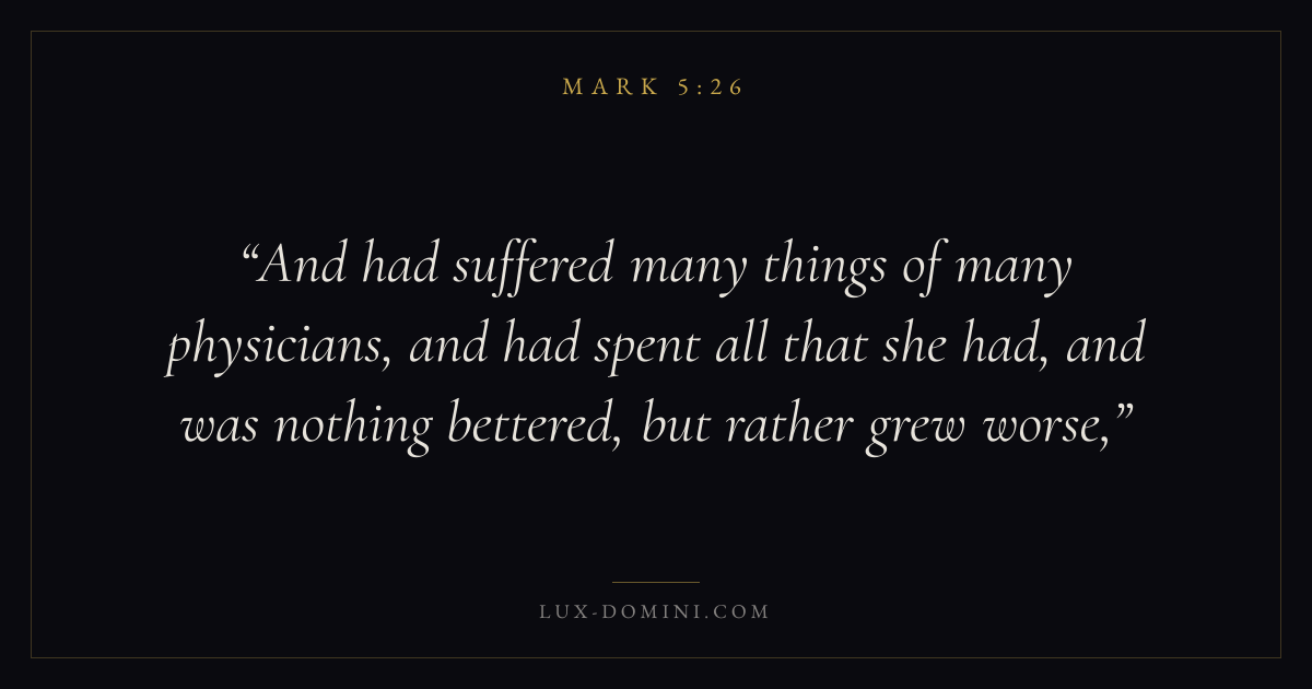 And had suffered many things of many physicians, and had spent all that she had, and was nothing bettered, but rather grew worse,