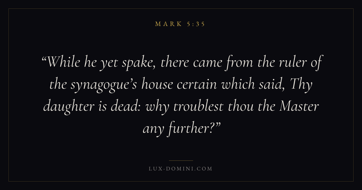 While he yet spake, there came from the ruler of the synagogue’s house certain which said, Thy daughter is dead: why troublest thou the Master any further?