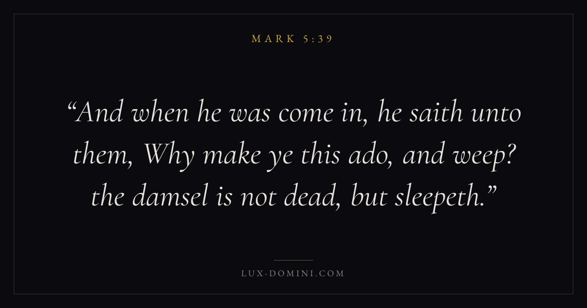 And when he was come in, he saith unto them, Why make ye this ado, and weep? the damsel is not dead, but sleepeth.