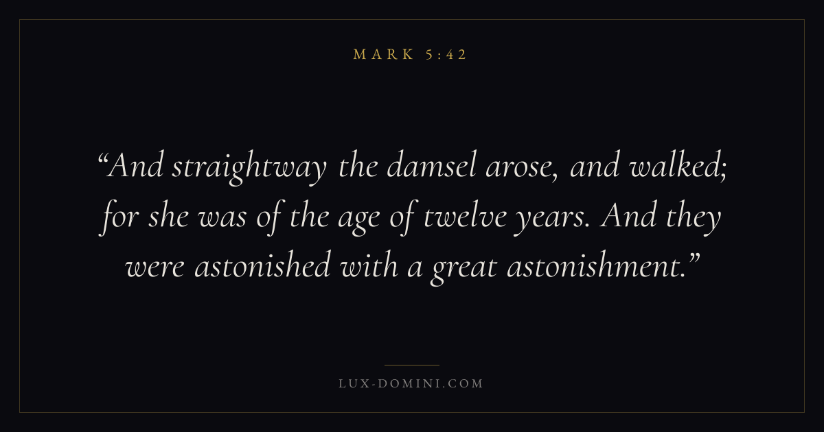 And straightway the damsel arose, and walked; for she was of the age of twelve years. And they were astonished with a great astonishment.