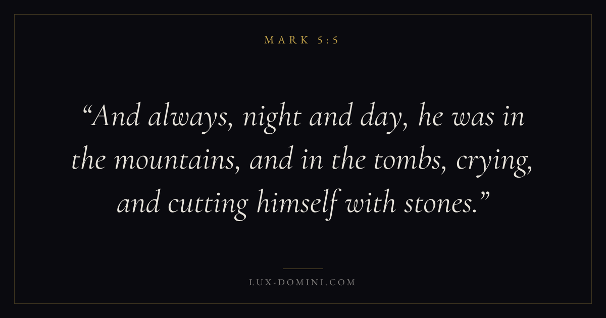 And always, night and day, he was in the mountains, and in the tombs, crying, and cutting himself with stones.
