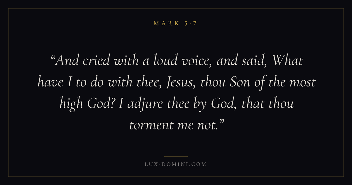 And cried with a loud voice, and said, What have I to do with thee, Jesus, thou Son of the most high God? I adjure thee by God, that thou torment me not.