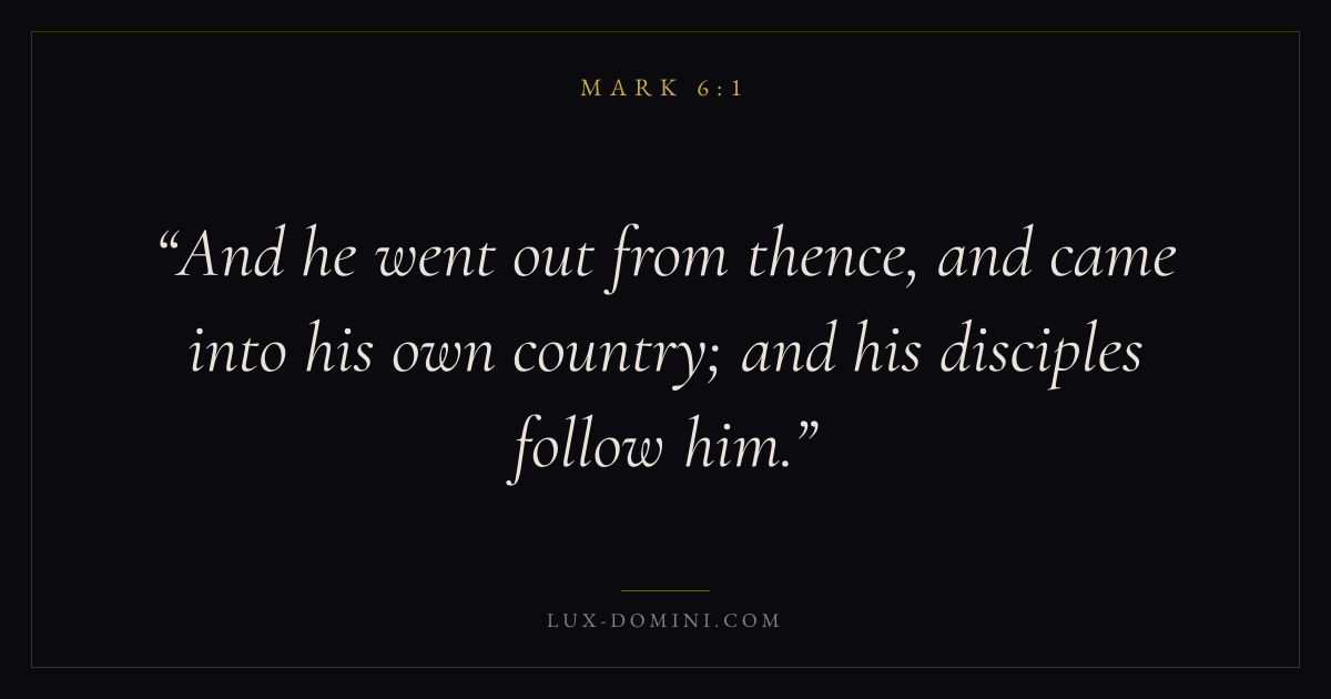 And he went out from thence, and came into his own country; and his disciples follow him.