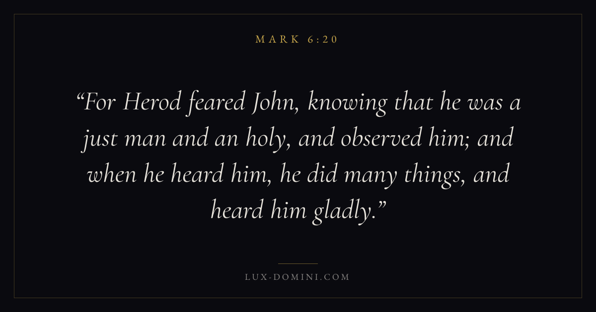 For Herod feared John, knowing that he was a just man and an holy, and observed him; and when he heard him, he did many things, and heard him gladly.