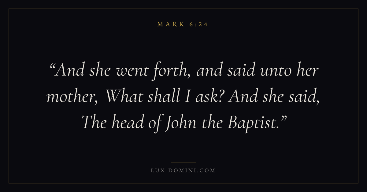 And she went forth, and said unto her mother, What shall I ask? And she said, The head of John the Baptist.