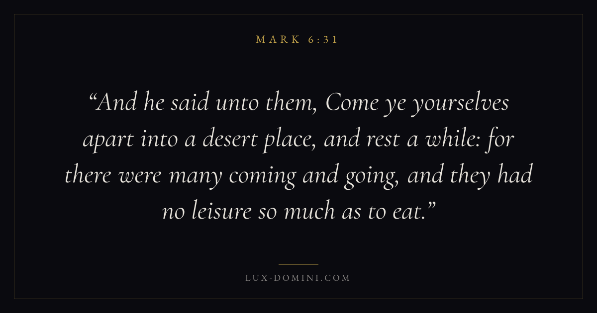 And he said unto them, Come ye yourselves apart into a desert place, and rest a while: for there were many coming and going, and they had no leisure so much as to eat.