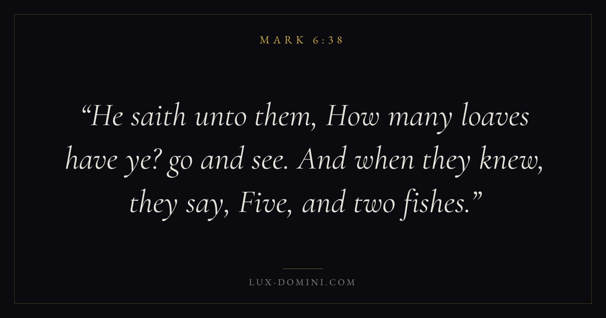 He saith unto them, How many loaves have ye? go and see. And when they knew, they say, Five, and two fishes.