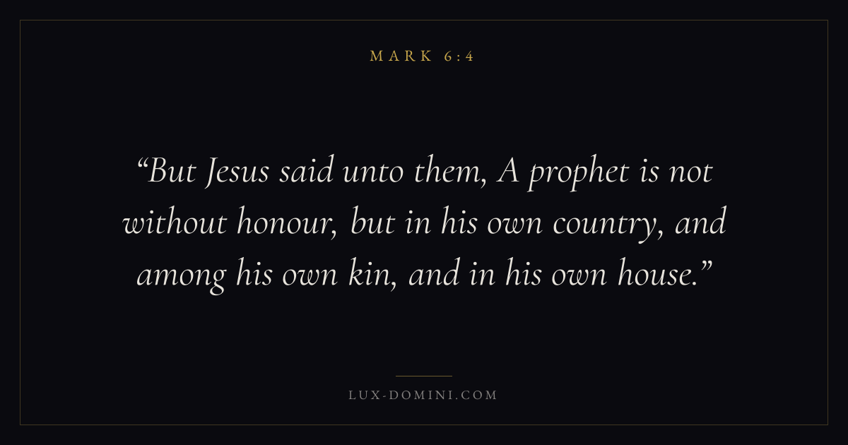 But Jesus said unto them, A prophet is not without honour, but in his own country, and among his own kin, and in his own house.
