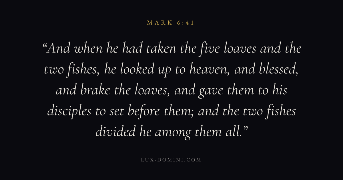 And when he had taken the five loaves and the two fishes, he looked up to heaven, and blessed, and brake the loaves, and gave them to his disciples to set before them; and the two fishes divided he among them all.