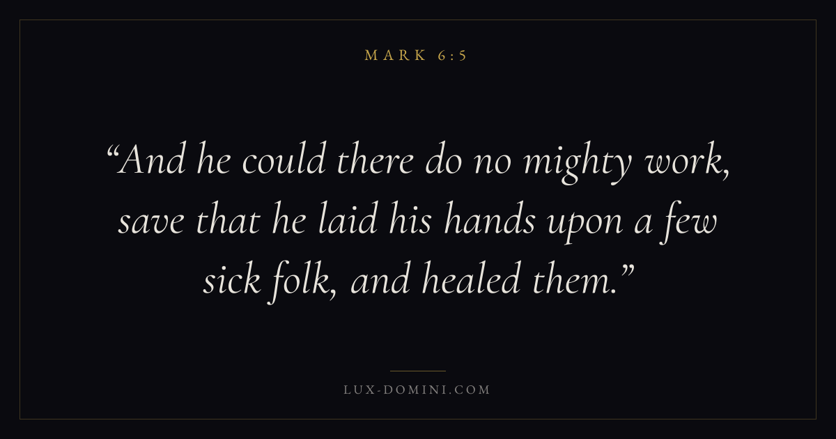 And he could there do no mighty work, save that he laid his hands upon a few sick folk, and healed them.