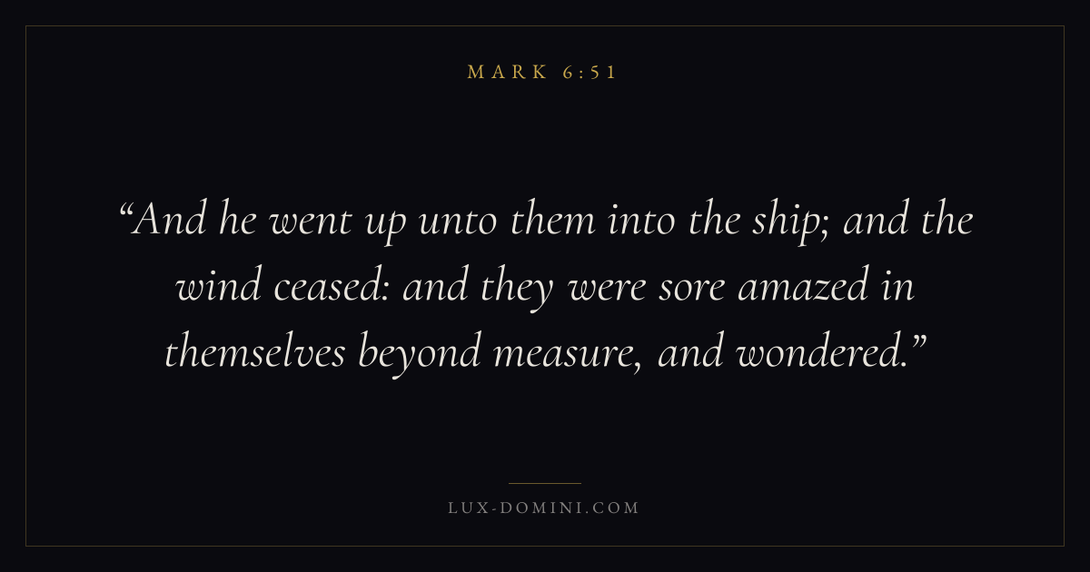 And he went up unto them into the ship; and the wind ceased: and they were sore amazed in themselves beyond measure, and wondered.
