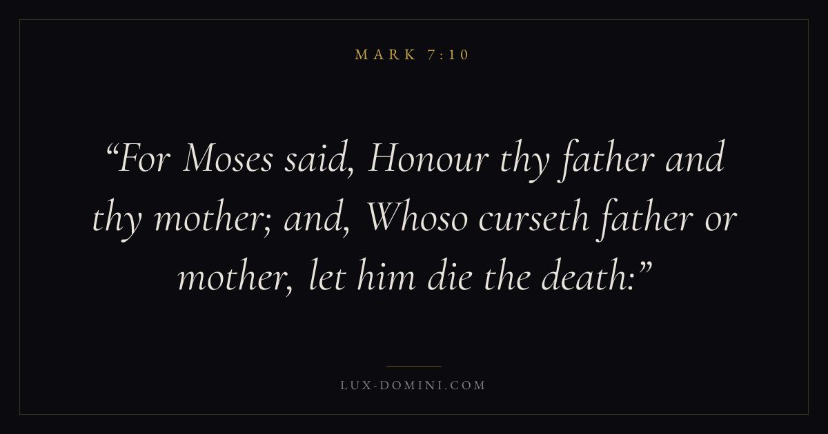 For Moses said, Honour thy father and thy mother; and, Whoso curseth father or mother, let him die the death: