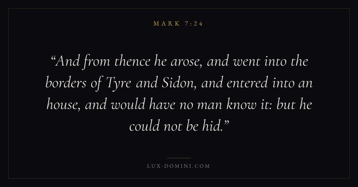 And from thence he arose, and went into the borders of Tyre and Sidon, and entered into an house, and would have no man know it: but he could not be hid.