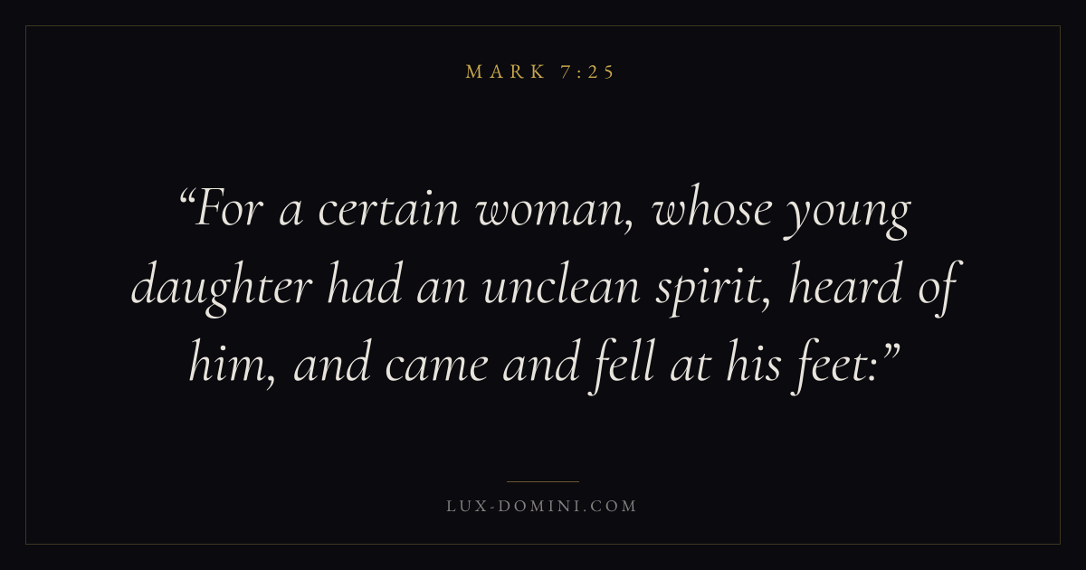 For a certain woman, whose young daughter had an unclean spirit, heard of him, and came and fell at his feet: