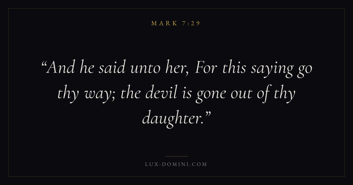 And he said unto her, For this saying go thy way; the devil is gone out of thy daughter.