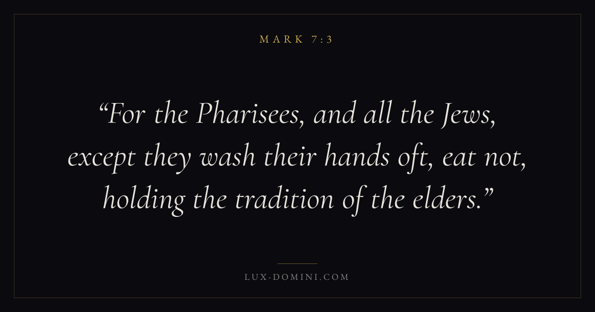 For the Pharisees, and all the Jews, except they wash their hands oft, eat not, holding the tradition of the elders.