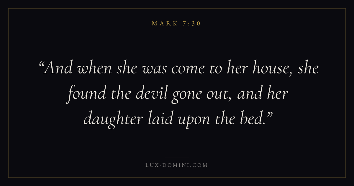 And when she was come to her house, she found the devil gone out, and her daughter laid upon the bed.