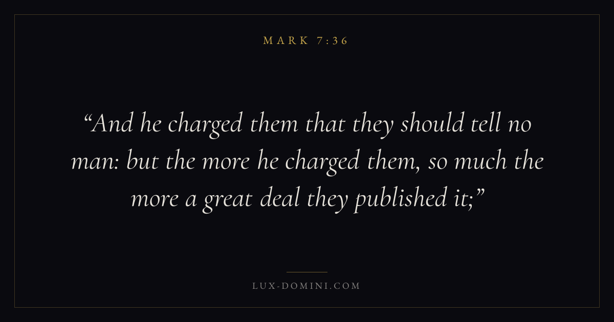 And he charged them that they should tell no man: but the more he charged them, so much the more a great deal they published it;
