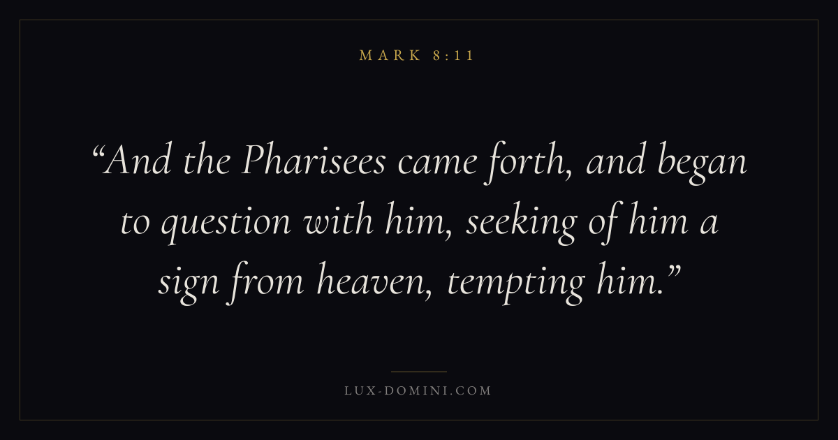 And the Pharisees came forth, and began to question with him, seeking of him a sign from heaven, tempting him.