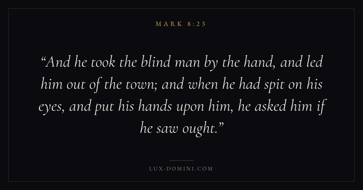 Keep this verse inside Mark 8:22-26 and alongside a few nearby related passages.