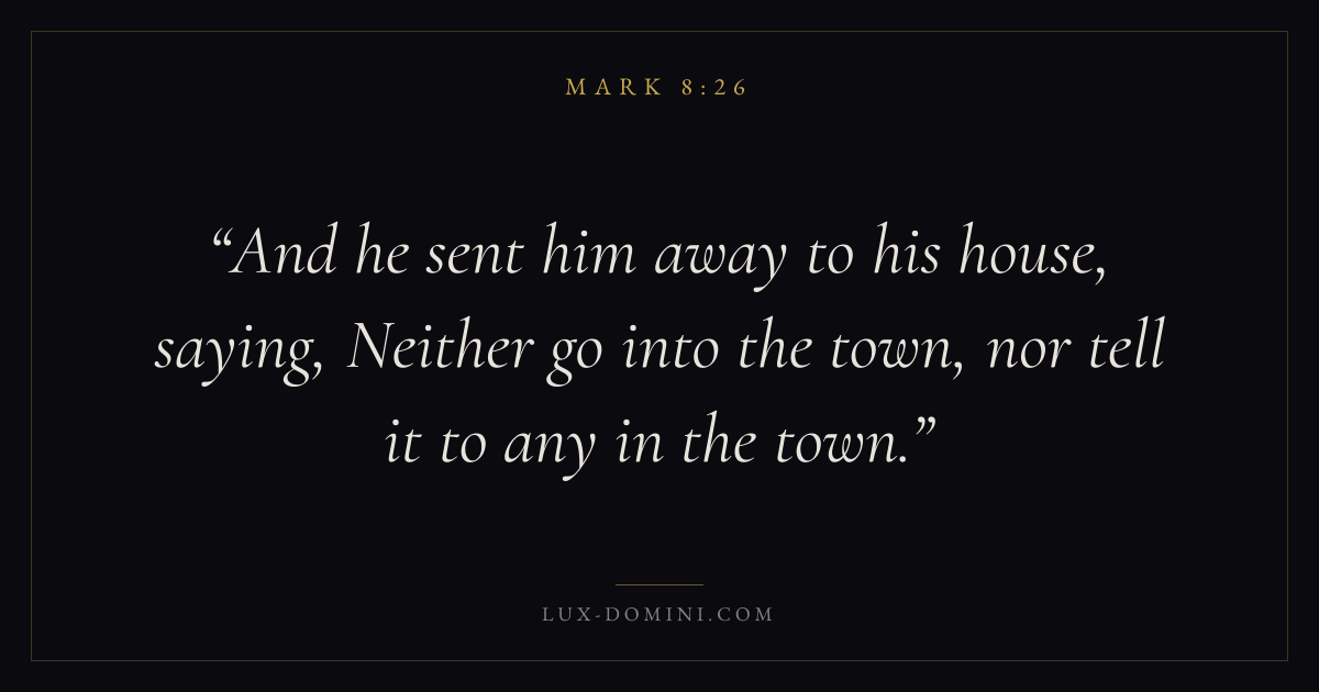 And he sent him away to his house, saying, Neither go into the town, nor tell it to any in the town.